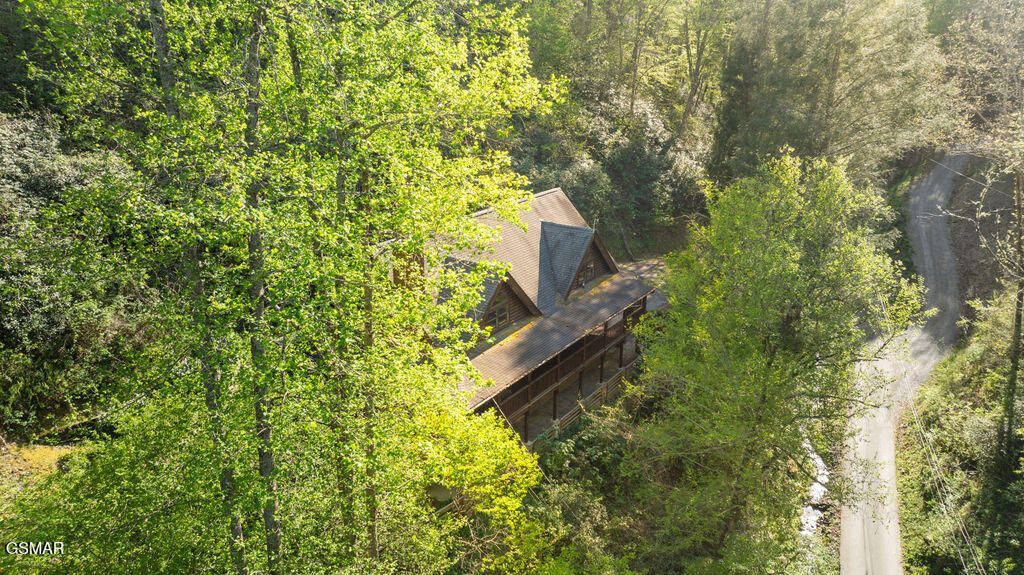 Hillside Hideout is a secluded cabin in the Pittman Center / Emerts Cove area offering over 2,900 sq ft of mountain charm just 6.9 miles from downtown Gatlinburg. Enjoy a short walk to the famous Emerts Cove Covered Bridge and spend your days fishing the stocked waters of the Middle Prong of the Little Pigeon River.This 2-bedroom, 3-bath retreat sleeps up to 8 guests and features a king suite, two full beds, a sleeper sofa, and sleeping accommodations on multiple levels for added privacy.Enjoy a soaring great room with exposed beams, a wood-burning fireplace, large windows, and rustic elegance throughout. The fully equipped kitchen includes an island, gas range, and dining area perfect for gathering. A bright sunroom and dedicated office provide extra space for relaxing or working remotely.The loft game room includes air hockey, arcade games, and Pac-Man for endless entertainment. Outdoors, unwind in the hot tub, grill on the deck, or enjoy peaceful wooded surroundings from multiple patios and decks under the stars.Additional features include Wi-Fi, keyless entry, a laundry room, garage, and paved parking. Conveniently located near Great Smoky Mountains National Park, CLIMB Works Smoky Mountains, and all the attractions of Gatlinburg, Pigeon Forge, and Sevierville.